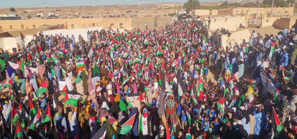 Os povos do Saara Ocidental estão fazendo grandes manifestações nos Acampamentos de Refugiados, na Argélia, no território ocupado e em espaços de diáspora. Nas marchas, dizem não ao texto de renovação do mandato da Missão das Nações Unidas para o Referendo no Saara Ocidental elaborado pelos Estados Unidos. O texto, que reflete a intervenção do governo Trump nas relações entre a aliança de Marrocos e Israel na ocupação de Gaza, foi adotado pelo Conselho de Segurança da ONU em 2 de novembro de 2025, e ignora o direito do povo saarauí à autodeterminação. No vídeo, Nana Ahmed-Salem Omar, do Saara Ocidental, apresenta a força do povo e das mulheres saarauí na luta contra essa ofensiva:
