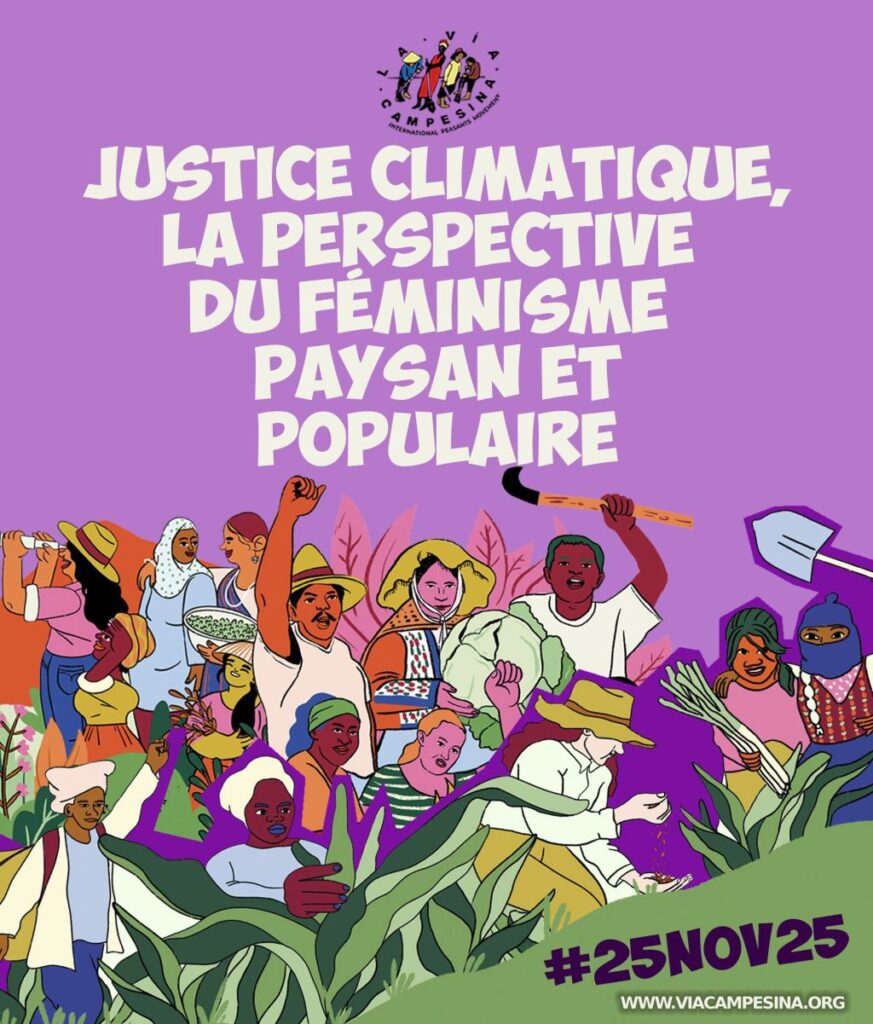 La justice climatique ne peut être atteinte sans une transformation profonde du système économique, social et politique qui maintient les inégalités actuelles. Elle implique également la reconnaissance et la réparation de la dette écologique et des injustices historiques subies par les peuples ruraux. Car il n’y a pas de justice climatique sans justice sociale, et il n’y a pas de justice sociale sans le féminisme paysan et populaire comme horizon de lutte et de transformation.